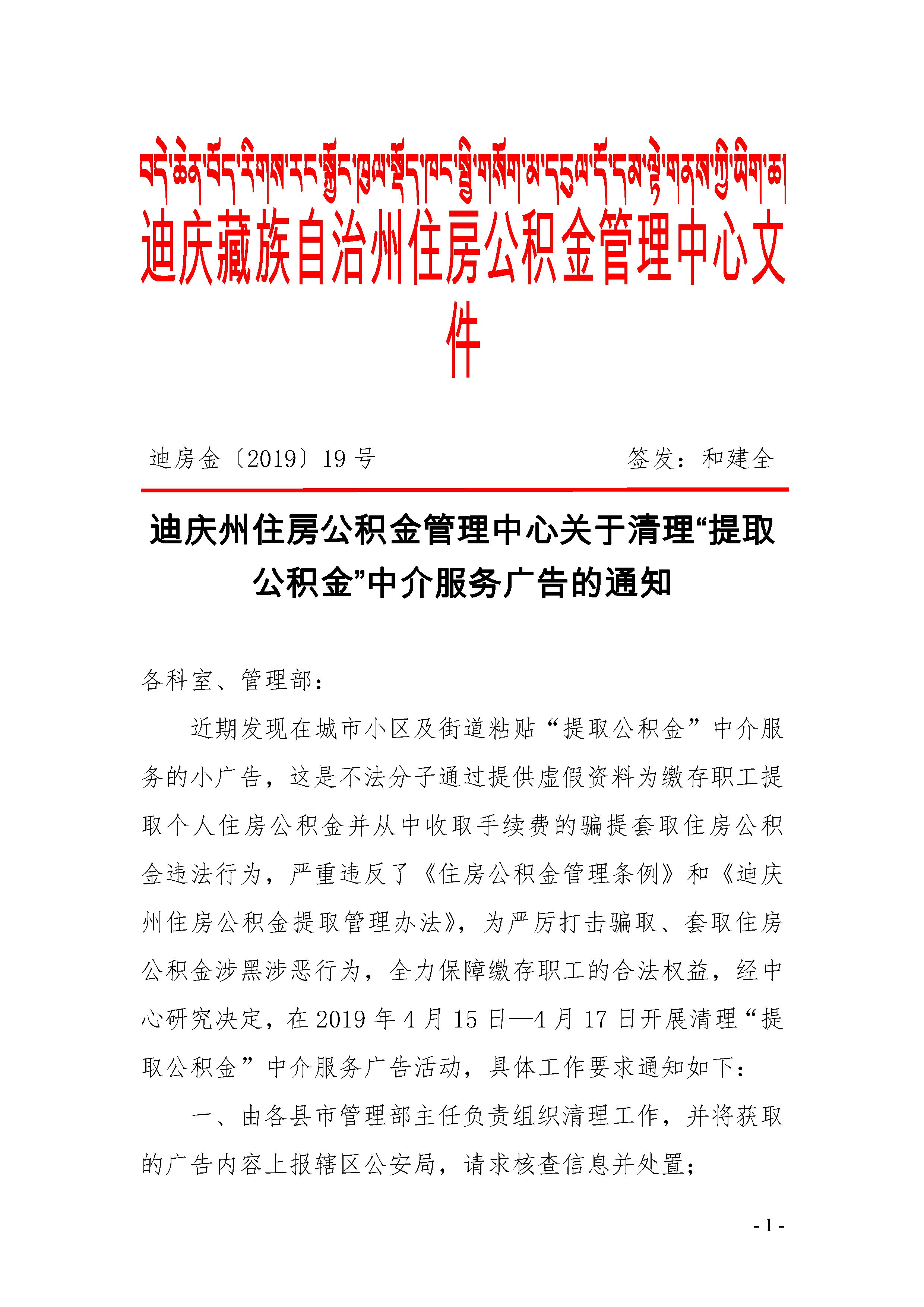 迪庆州住房公积金管理中心关于清理“提取公积金”中介服务广告的通知