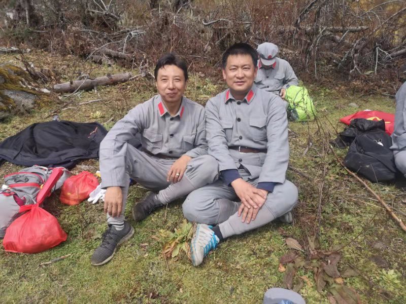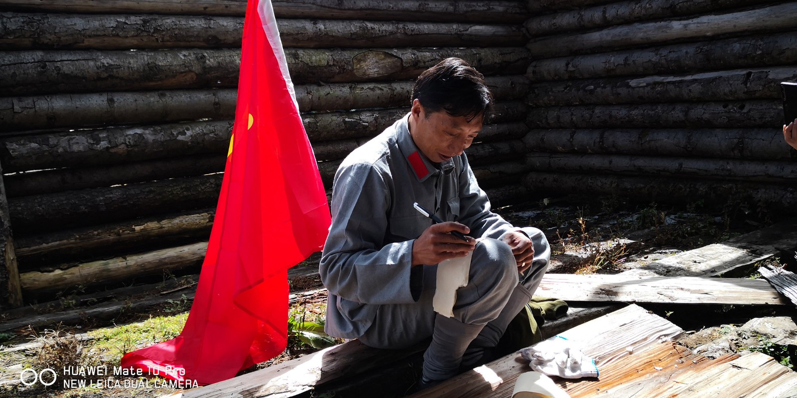 晌午时分,我们顺利到达雅哈雪山垭口,凉风轻吻,通体舒畅,在一间废弃的牧房里,大家围坐一堂,摆上午餐,补充体力。队伍进行了简单的休整,借此休整,中心党支部书记寸丽松给大家讲述了当年红军至中甸境内的红色历史,在这条路上,红军战士跋冰卧雪、风餐露宿、为革命抛头颅,撒热血,大家肃穆聆听,热血沸腾、毛主席的《七律 长征》在雪山顶上回荡。
