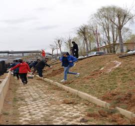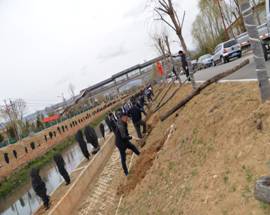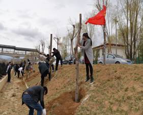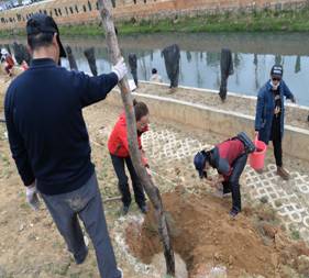 到达植树现场后,大家放下背包,脱去外套,在工作人员的指导下,植树有序进行。为保证树苗的成活率,大家听从工作人员的现场指挥,领取树苗、挖坑、培土、浇水等工作按照要求认真细致,做到标准,分工协作、互帮互助,劳动热情十分高涨。一个多小时热火朝天的劳动虽然让大家大汗淋漓,但在栽下的一棵棵柳树苗旁,绽放的却是一张张快乐的笑脸,劳动带来的成就感和喜悦溢于言表。